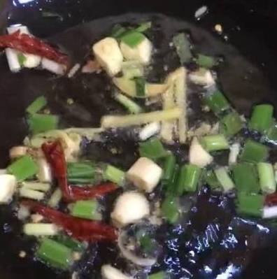 4.锅中放油等油热后放入葱、姜丝、蒜末、干辣椒段,爆出香味!