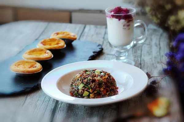 蛋挞,胡萝卜黄瓜韭菜炒饭,猕猴桃火龙果酸奶,一顿省事又美味的早餐。
