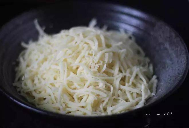 2、将土豆丝放入水里浸泡几分钟,洗掉自身的淀粉。然后冲洗干净控水,用干抹布或者厨房纸将水分吸干。