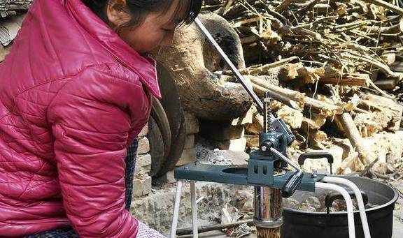 蒸好的窝窝头要趁热在机器上压成面条,席大妈说过去都是用的饸饹床子,那个工具比较笨重,要两三个人一起才能完成制作,现在有人发明了这种小机器,一个人就可以轻松的压出饸饹面。