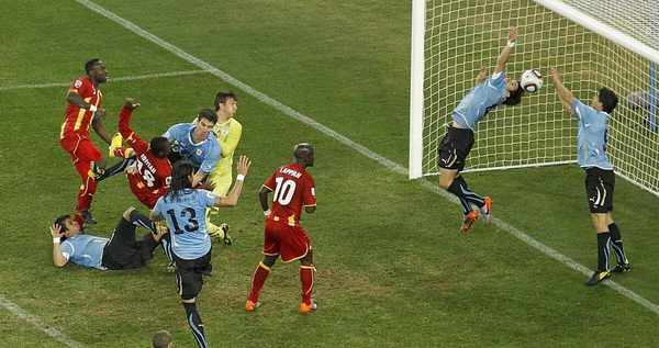 提起加纳的世界杯历史,不得不讲到2010南非世界杯1/4决赛加纳对阵乌拉圭中的经典一幕,苏亚雷斯在加时赛中用手挡出了加纳队的必进球,吃到了红点套餐,但随后吉安罚丢了可以决定比赛的点球,导致双方进入点球大战,加纳队最终无缘半决赛。