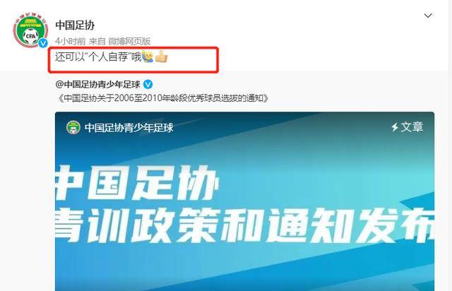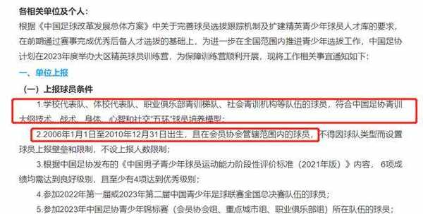 从足协的通知来看,这些足球运动员只要是学校国家队、体校国家队、职业俱乐部青训梯队等都可以申请。但是,有一定的年龄限制,即必须是2006-2010年间出生的球员。此外,中国足协官方提醒大家,“你们也可以自荐”。