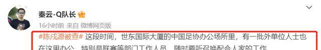 从时间上来说,李铁被带走已经快四个月了。他是2022年11月9日被捕的,而陈戌源是2023年2月14日情人节落网的,前足协主席也被带走了。已经21天了。据国内记者秦云报道,中国足协的部分工作人员必须参与调查组的调查,调查组目前正在足协办公楼办公。看来,打击足球犯罪的运动还没有完全结束,足协内部可能还有与陈戌源、刘奕等人关系密切的人没有被捕。