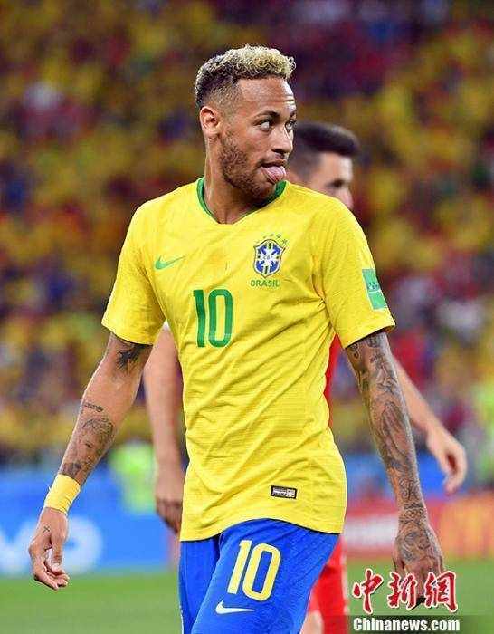 资料图:内马尔头顶“泡面”出场。 中新社