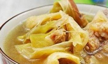 原料:霸王花50克,银耳20克,排骨200克,红枣10粒,枸杞20粒,盐10克,鸡精粉6克,白胡椒10粉,香油5克,姜葱10克,大油10克。制作方法:1、将排骨洗净砍成块,霸王花,银耳用开水泡1小时,用手撕开,红枣、枸杞洗净。2、炒锅上火放入大油,将排骨炒断血水,放入清水,烧开打出泡沫,放入霸王花、银耳、红枣、枸杞、姜葱汁,白胡椒,用微火炖150分钟,加入盐、鸡精粉、香油,烧5钟即可。3、将炖好和汤打入一直径40厘米的大圆碟中,取3个长10厘米的小腰碟摆在汤碗的旁边,每个小腰碗中放3朵不同种类的花。特点:花艳汤美,情调浪漫。