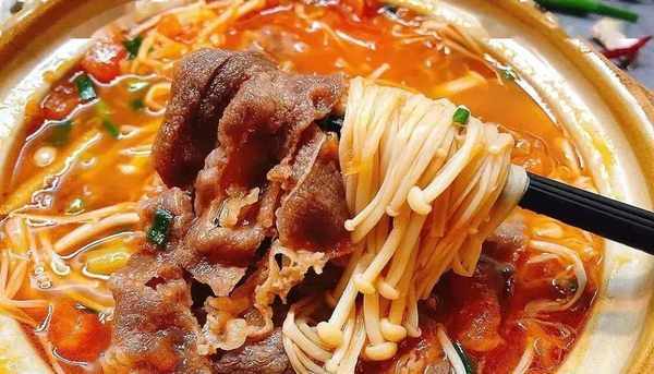 2:肥牛焯水30秒捞,金针菇焯水1分钟捞起备用