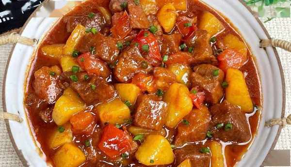 4:盖上盖子,开启炖牛腩,选择适中口感,炖一个小时后,加入土豆剩下的番茄,继续炖到时间到,加入少许盐葱花就可以啦