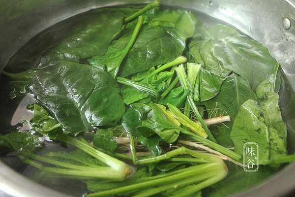 【做法】:1、菠菜洗净切段,根部也要留着并搓洗干净,锅烧开水,下菠菜烫1分钟(去除草酸),捞起沥干;