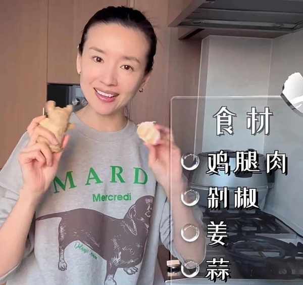 董洁介绍说:我做饭最大的特点就是调理用得特别少,今天调整一个调料配料表,都是非常简单的。鸡就用鸡腿肉,主要配料就我们的剁椒,剩下的就是姜和蒜,然后我们这道菜就ok了,好了接下来就开始做了。