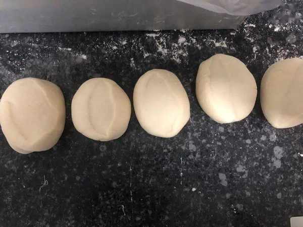 9、等时间到了,倒出面团,开始揉搓排气,分成均等大小的面剂。
