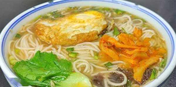 2、油热以后打入两颗鸡蛋,煎到两面金黄之后,倒入滚烫的开水。大火把汤汁煮浓白,然后转小火,再下入面条煮一分钟之后,水再次烧开后再加入一碗清水,俗话说,三开饺子两开面,煮面条加两次水就可以了。煮好之后,把面汤先盛到碗里,再把面条,荷包蛋加进来,放上两颗小青菜,一勺咸菜,喜欢吃辣的可以再放点辣椒油,虾皮鸡蛋汤面就做好了。