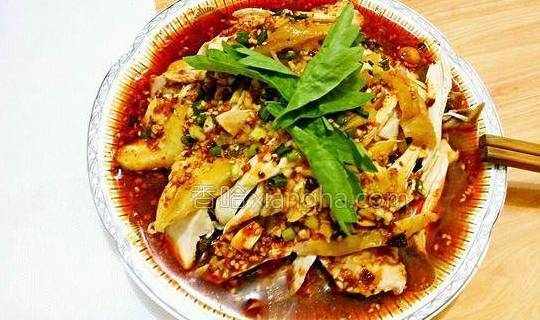 6.将两碗料汁混在一起,浇在鸡上面就可以了