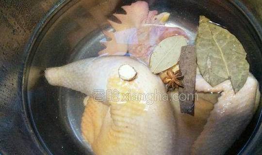 2.煮沸后转小火继续煮30分钟,用牙签扎鸡腿肉最厚的地方,没有血水流出的话就煮好了