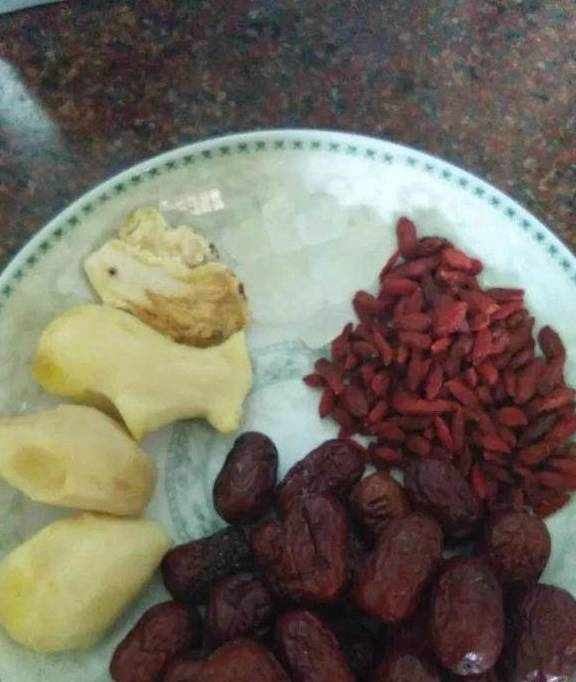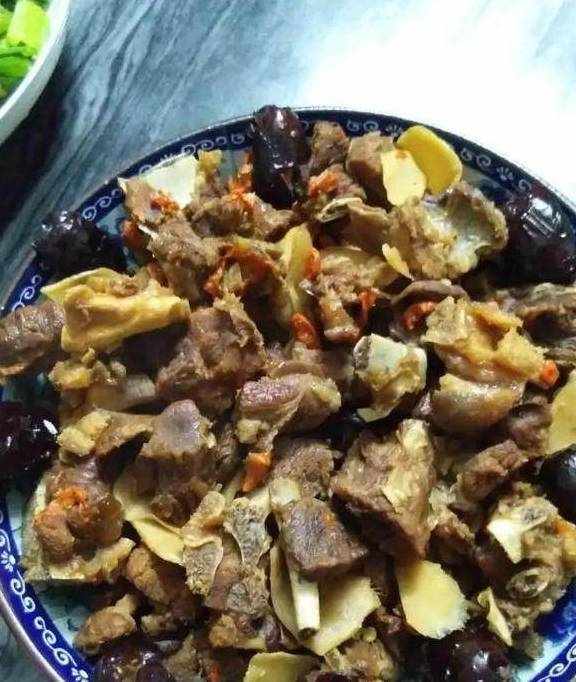 羊肉1000克、姜、党参、当归、枸杞、红枣、娘酒、菜叶、冰糖