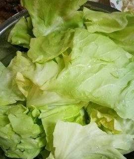 2.洋白菜去劲,撕成小片,洗净。