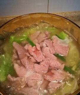 但有朋友不能吃辣,故刻意制作的这道别样的水煮肉。口味算清淡,肉嫩汤鲜。