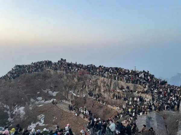 离大明湖不远的千佛山也“摩肩接踵”,山顶眺望济南城貌的人群让网友戏称见证了“千佛山大捷”。