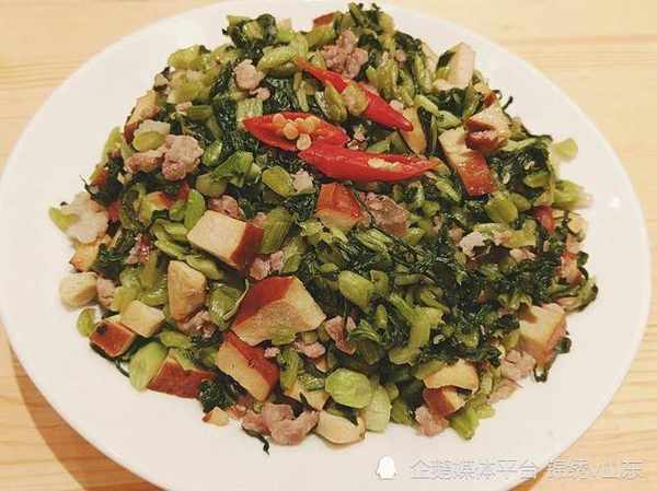 1、芥菜洗净拣去老叶子,拧干水分切碎成丁,加盐腌制10分钟后沥干水分。