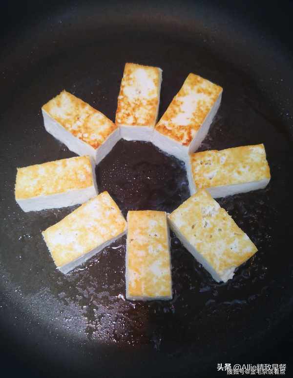色泽金黄诱人,外焦里香,内里软嫩,炖豆腐吃腻了,时不时换个路子,真的很满足。