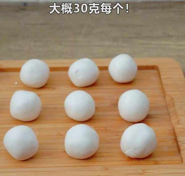 200g糯米粉加10g糖、适量温水,揉成一个光滑的面团。