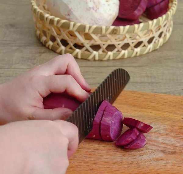 趁热加50g牛奶和10g糖碾碎成芋泥备用。