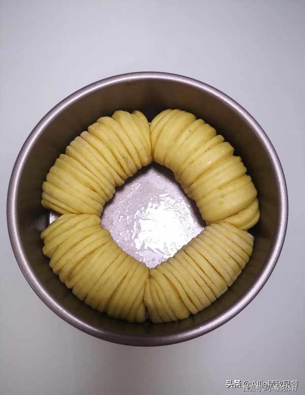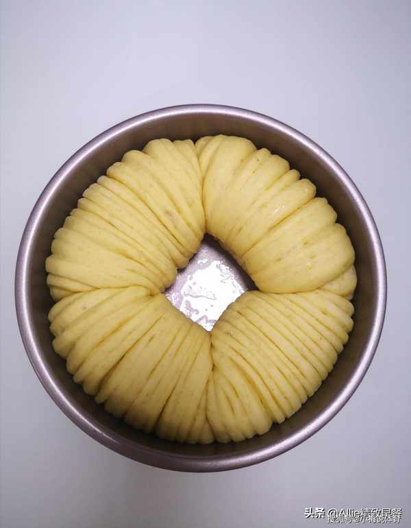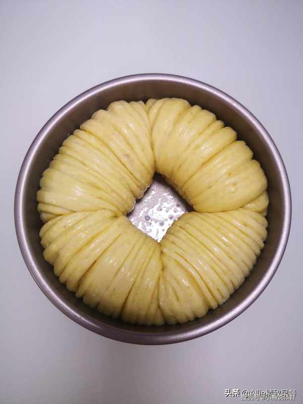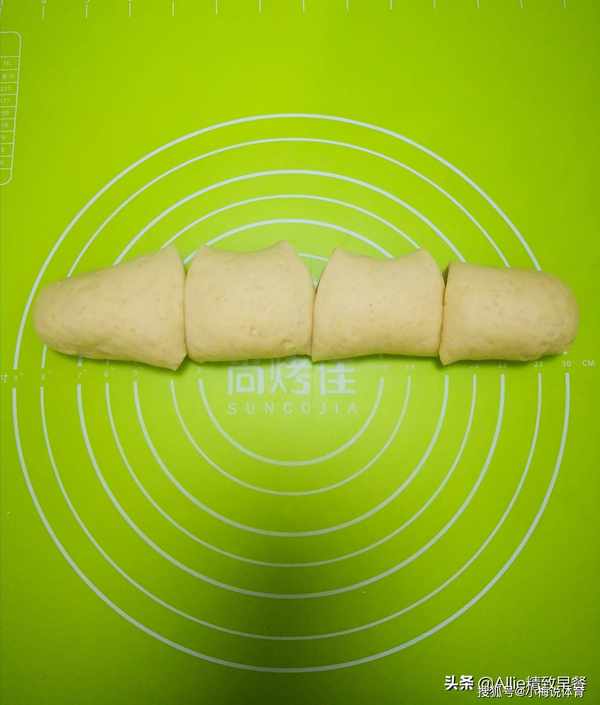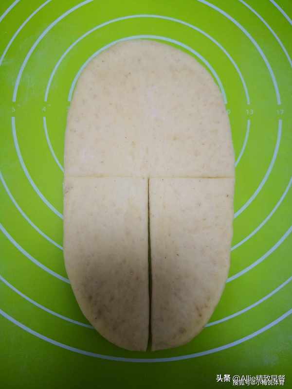 分成4等份。一些在线教程说分成5等份。个人比较推荐使用4等份,更容易入模,而且发酵后不易挤压变形,纹路更清晰清晰。