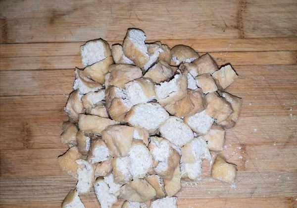 豆泡先过一下清水,然后将1个豆泡切成4小块。
