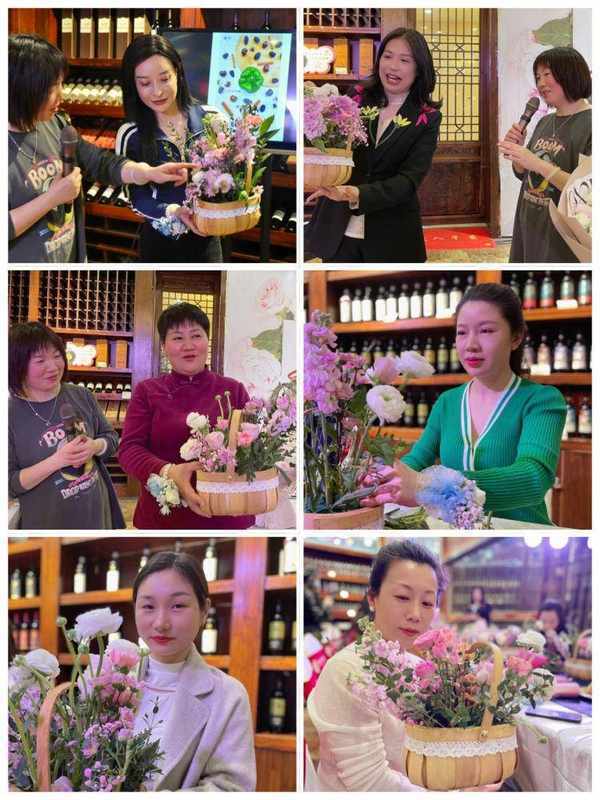 经过大家的精心制作,一个个错落有致的花篮惊艳地在彼此手中呈现,女神们对着花篮或拍照、或端赏,成就感十足。插花结束后,花艺师还对女神们的作品进行了品评。