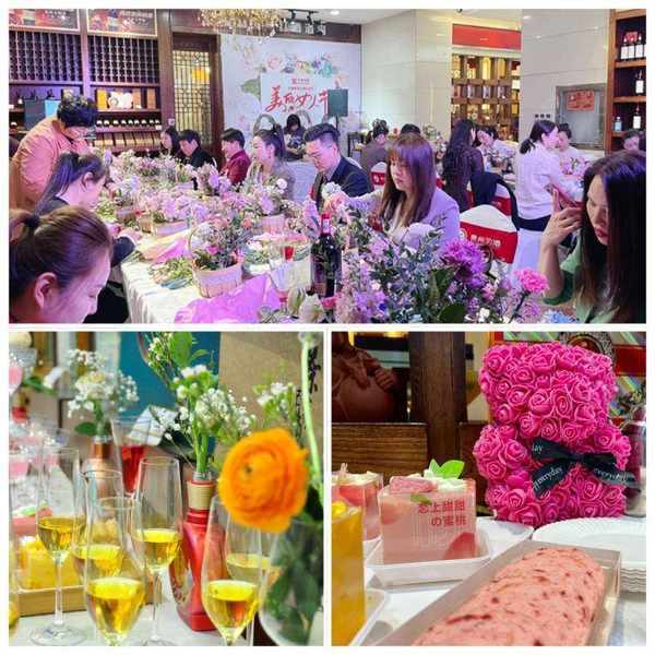 【天中商界讯】(朱剑锋 邓青)插花品酒相映成趣,花香酒香浓郁醉人。3月8日是一年一度的三八妇女节,当天下午,乐山大道与置地大道交叉口华源国际酒城二楼花香四溢,“专属女神私享会”在这里优雅绽放。活动现场以花传情、以酒会友,气氛高雅而温馨。