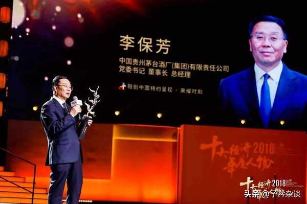 贵州茅台年度实现营收736亿元,助力茅台集团李保芳登顶2018十大经济年度人物,同红豆集团周海江、分众传媒江南春、飞鹤冷友斌等一同荣膺此项殊荣。