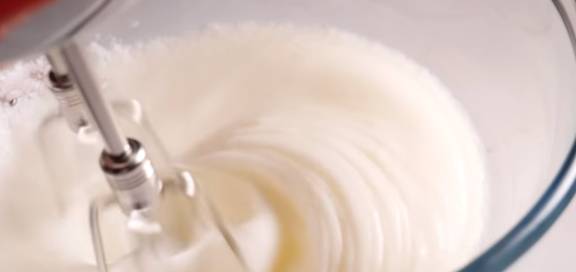 蛋清分三次加白糖打发,打发好的蛋白像奶油一样,倒扣打蛋盆蛋白霜也不会流出来才是最好的状态。一般打发时间为3分钟,需要使用电动打蛋器。