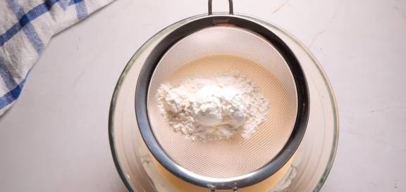 再过筛低筋面粉,搅拌到看不见白色的粉末为止。