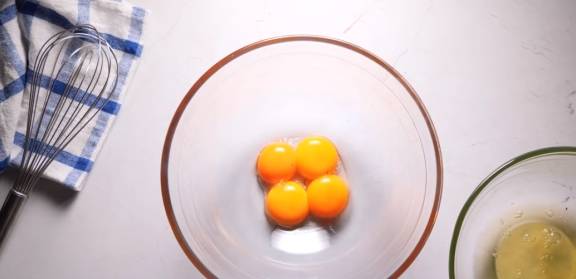 【做法】分离鸡蛋黄和鸡蛋清,鸡蛋清要放在无水无油的碗中,保证打发成功率。
