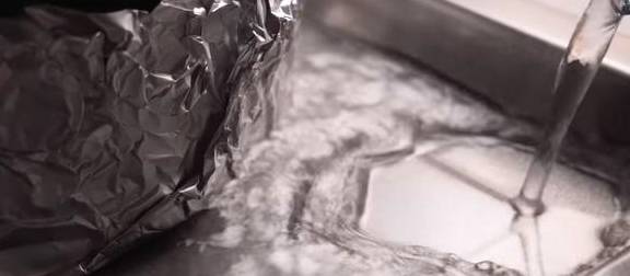 圆模底部再包一层锡纸,放在一个大一点的烤盘里面,注水到盘子三分之一的高度。