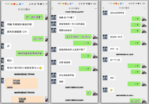 用户“阿默”留言“在宅家吃饭遇到一个阿姨,做的一手的东北饭菜,每周都会点三四次,锅包肉像极了我妈妈炒出来的味道,没想到在杭州还能吃到这口老家味道”。