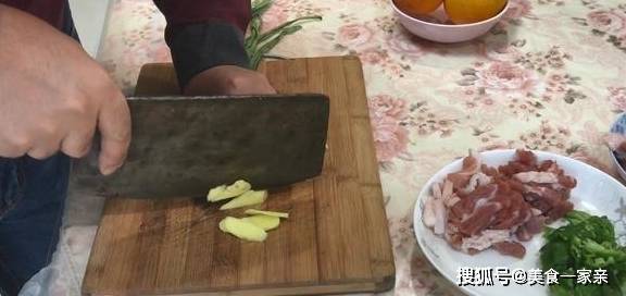 第三步:把买来的新鲜五花肉清洗干净,先切成片,再切成条装入碗加入盐、生粉、食用油拌匀腌10分钟。