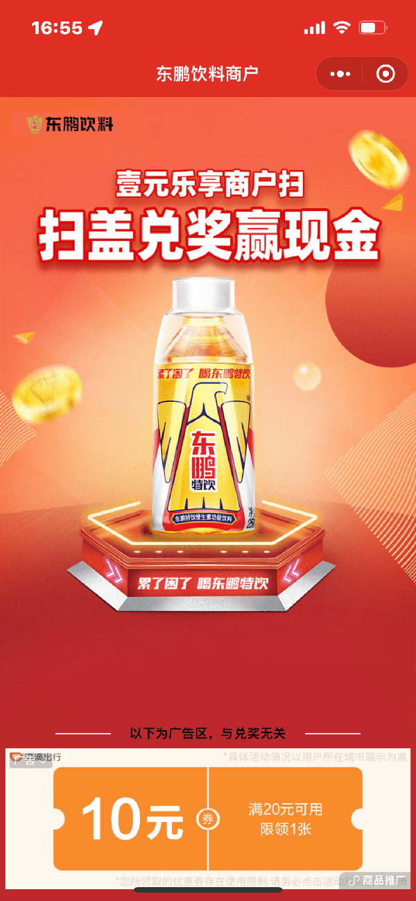 我国有将近800万的终端店,大部分经营者年龄较大,扫码意愿不强。于是,在早期对于终端店主的开箱扫码活动中,东鹏给出了0.5元的现金扫码奖励,跟卖废品纸箱价格近似,但跟卖废品比起来,微信扫码,进行几步操作就能领取红包的事,就显得不那么麻烦了。