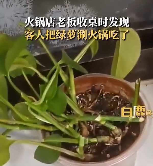 根据陕西网白鹿视频报道,近日在辽宁本溪,一火锅店老板发视频称,店里的顾客薅了自己的绿萝盆栽涮火锅,引发广泛关注。