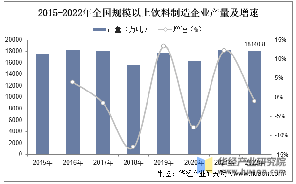 近年来我国规模以上饮料制造企业产量呈现出波动变化走势。据国家统计局数据,2022年全年,全国规模以上饮料制造企业产量达到18140.8万吨,同比下降1.05%。