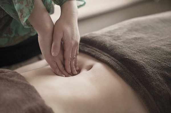 操作方法:周身肌肉放松,全掌着力,以掌心着腹,意念置于掌心,以肚脐为中心,慢而轻柔地顺时针和逆时针按摩各20圈,摩腹前可以先将手部搓热后进行。