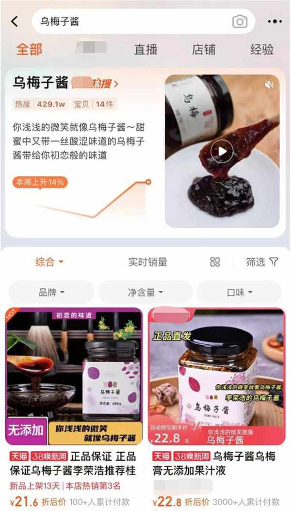 乌梅子酱登上电商平台热搜(网络截图)