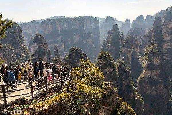 △3月4日,湖南张家界,游人在武陵源景区参观游玩。