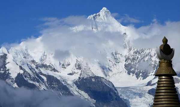 由于这座主峰的顶端呈现金字塔形状,不是一般的陡峭。根据记载,曾经在19世纪末,有一批国外人来到西藏,经过一番考察之后,决定攀登珠穆朗玛峰,可是在攀登之前需要先拿一座山峰练手,然后就将目光锁定在卡瓦格博峰之上。