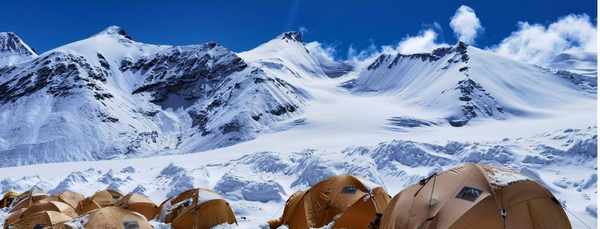 然后登山队一口气攀登至海拔3400米的高度,迅速搭建了大本营,分别在海拔4900米、5100米和5300米的海拔上搭建小营地,随后在距离山顶只有800米的山峰上,搭建了最后一个营地,随时准备冲顶。