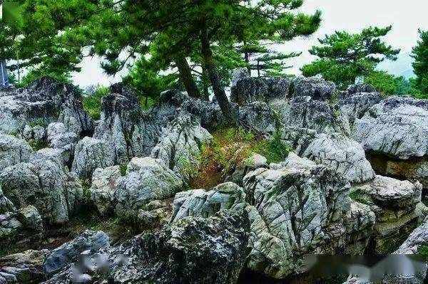 这是王莽岭附近山顶出露的寒武系至奥陶系的石灰岩,由于石灰岩易于溶解,所以经流水溶蚀,表现出了喀斯特地貌的特点。岩石表面有刀砍状的溶蚀沟痕,起伏不平的岩石面,反映出溶蚀形成的石芽的特点,也说明太行山的山顶是一个剥蚀面。摄影/杨孝