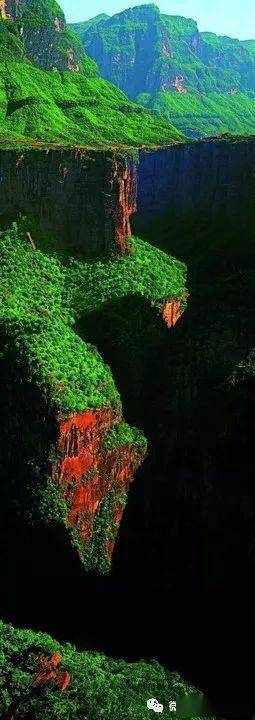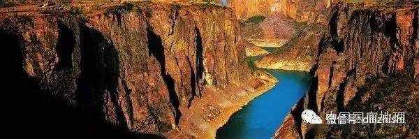 这幅图片是南太行河南境内的曲流峡谷,它深深地切入在“白色石灰岩”和“红色嶂石岩”中,虽然由于峡谷中水库的蓄水,淹没了这个曲峡下部最为深幽的部分,使景观减色不少,但还是可以想见它的奇异。摄影/秦玉海