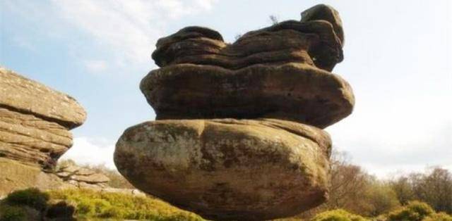 偶像石位于英国伯明翰荒野,其成因与飞来石类似,而似随时要倒塌的惊险程度比起飞来石又更深了一层,在一块小小的锥形石头之上,支撑着一块两百吨左右的巨石。人们很难想象,这看起来十分脆弱的组合,经历了几百年的风吹雨打还能依旧屹立不倒。
