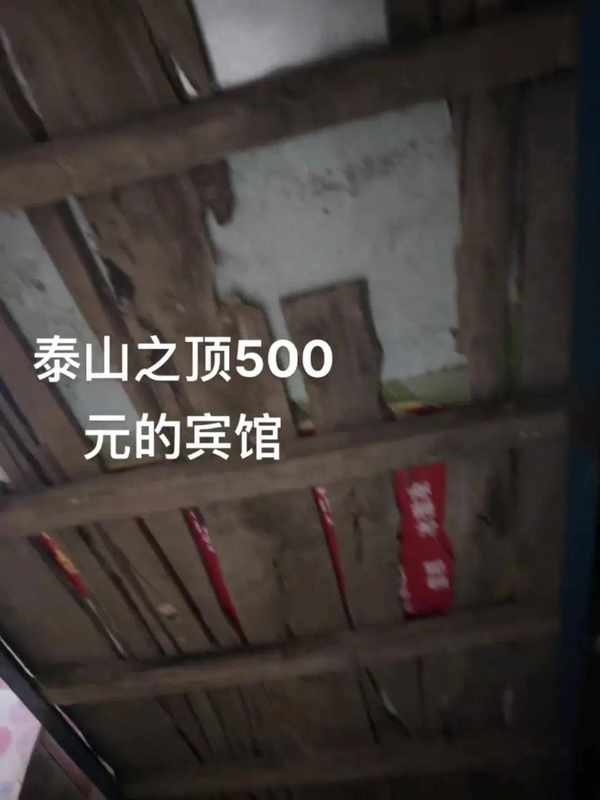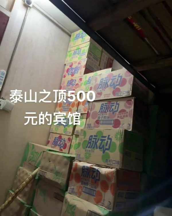刚刚看到一位姑娘晒出了她最近爬到泰山顶上住的宾馆的视频,宾馆看上去非常简陋,就像仓库一样,里边就是有一张床,还摆放着各种饮料箱子。