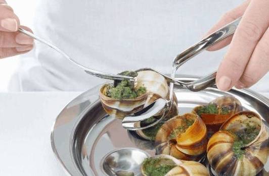 法国人不会用筷子,吃蜗牛可就费劲了。需要专门配备的钳子和双齿叉,吃的时候,用钳子夹住蜗牛壳,再用叉子将蜗牛肉挑出来。法国人吃蜗牛往往极尽优雅之态,不能吃的太快,会让人觉得粗鲁。