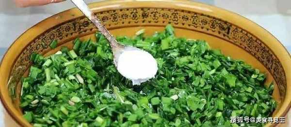 那解决这一问题最好的办法就是用熟油,先锁水,再调味;但不要加生油,生油吃起来容易发腻;利用熟油这层保护膜,来锁住韭菜的水分,这样再加食盐调味,一是韭菜馅不容易出水,二是煮熟后韭菜的颜色也会更翠绿;